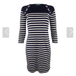 RALPH Lauren Nautical Navy & White Striped 100% Cotton Dress