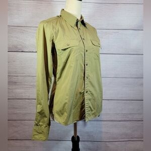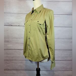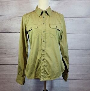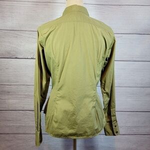 RALPH Lauren Skinny Fit Button Up Top Olive Green Blue Label Size 12