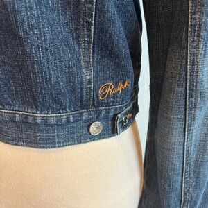 RALPH Ralph Lauren Dark Blue Wash Ruched Shoulder Denim Jean Jacket Medium