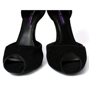 RALPH LAUREN PURPLE LABEL Suede Peep Toe Stilettos w/Silver Metal Chain