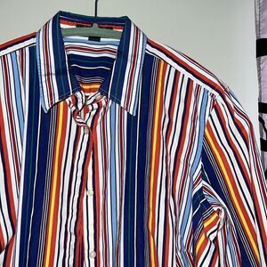 RALPH LAUREN White Multi Vibrant Stripe Crisp Cotton Button Shirt Top Sz 1X