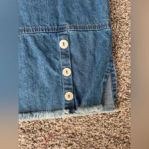 RAMA of USA women’s vintage denim top with iridescent button design on chest area and left hip area. Raw hemline on bottom and sleeves. Box cut style top. No signs of wear.