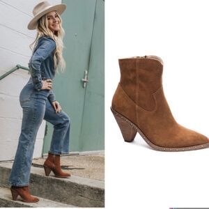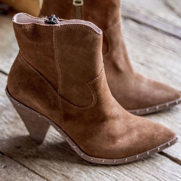 GORGEOUS genuine suede booties!!! Easy Side zip closure! Love love love the studs giving the the perfect amount of edge! Amazing western 3.25” heeled Bootie!