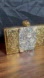 This stunning gold clutch is adorned with sparkling crystals, perfect for adding a touch of glamour to any outfit. Ideal for evening events and special occasions.