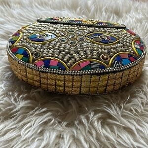 RAMLA Rio mosaic handcrafted art to wear gold multicolor shoulder bag clutch new