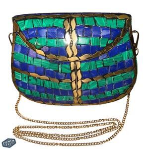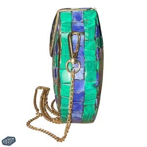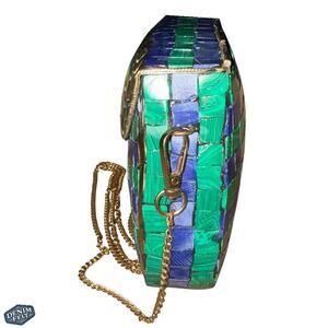 RAMLA Women’s Blue/Green/Gold Mosaic Handmade Unique Metal Bag w/ Strap | NEW!