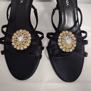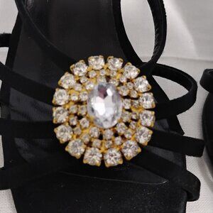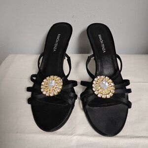 ❤️RAMON TENZA BLACK Rhinestone Vamp Evening Dress Slides Shoes Sz 8.5 $450