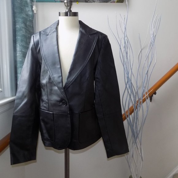 Rampage Genuine Leather Blazer Jacket Size Medium Front Pockets Button Closure Lined