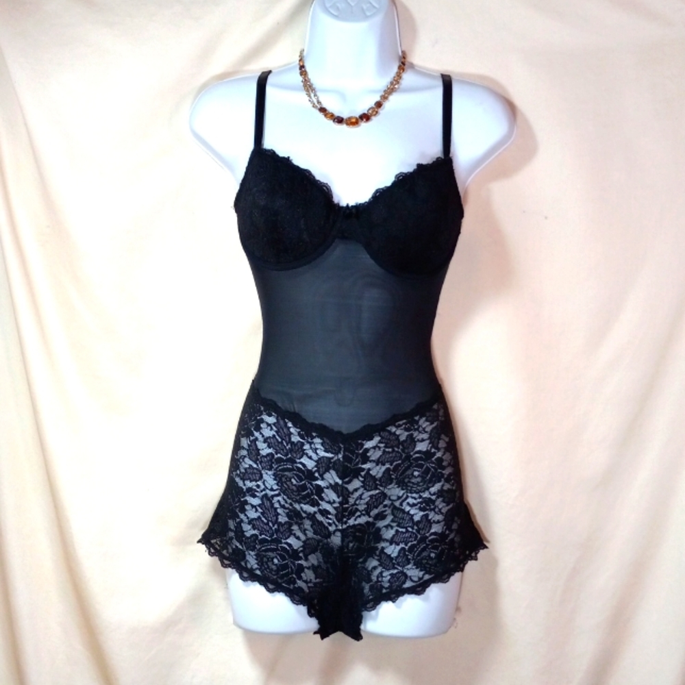 Beautiful Boss Lady Black w/ Padded Bar ,Ajustable Straps ,Simi Sheer Mesh w/ Lace Bottom & "3 Snap Bottom 🖤 So Cute Perfect For Chillin On A Hot Summer Nite In Perfect Condition .