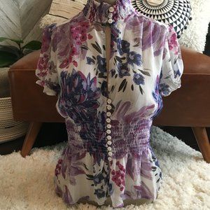 RAMPAGE SHEER FLORAL SHORT SLEEVE BLOUSE