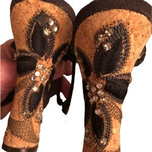 RAMPAGE black platform embellished size 10 cork heel open toe strappy embellished platform heel