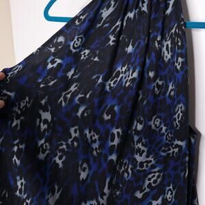 RAMY BROOK Allymay Sleeveless Silk Top Leopard Animal Print Navy Blue Women's L. Lightweight non-stretch chiffon. Mock neck with ruffle trim. Sleeveless. Hook-and-eye at neckline. Shell: 100% silk. Lining: 100% viscose.