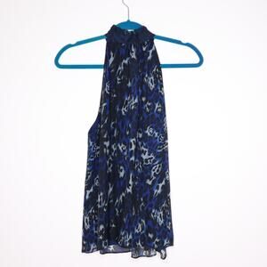 RAMY BROOK Allymay Sleeveless Silk Top Leopard Animal Print Navy Blue Women's L