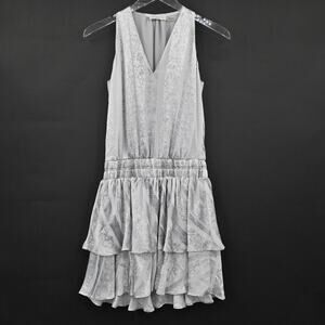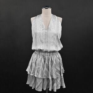 RAMY BROOK Avery Mini Dress Size S Sleeveless Smocked Waist Silver Snake Print