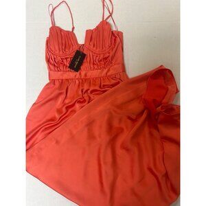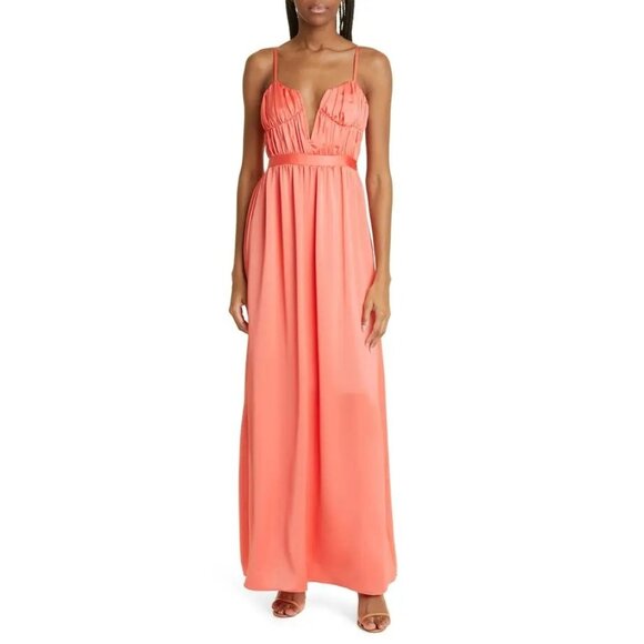 RAMY BROOK Becky Plunge Neck Satin Gown Guava Size 4 NWT $645