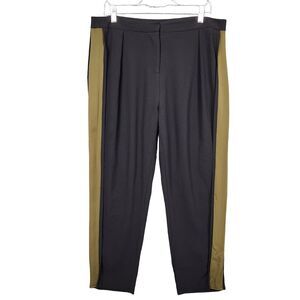 RAMY BROOK Black Green Carey Side Striped Tuxedo Crepe Silk Blend Pants SIZE 12