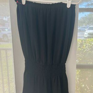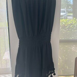 RAMY BROOK STYLE IN A CUT/POOL E BEACH COVER-UP OR DRESS. THE BLACK IS NOT VERY TRANSPARENT. DRESS CAN BE WORN FOR BEACH/POOL PARTY OR DAY OR NIGHT. PRISTINE CONDITION. STRAPLESS AND TASSELED, WITH GREAT STYLE AND FLAIR. SIZE XS - CAN FIT A SMALL.