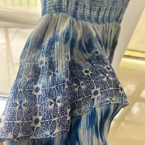 FABULOUS RAMY BROOK DRESS. BEAUTIFUL COLOR COMBO AND NICE CRISS CROSS DETAIL ON THE BACK OF DRESS. THE DRESS HAS RAMY BROOK SIGNATURE GATHERED WAISTLINE AND SKIRT IS LAYERED AND FLIRTY. EASY TO WEAR, COMPLIMENTS ANY BODY SHAPE.