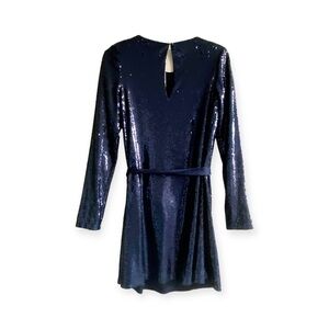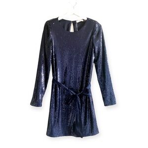 RAMY BROOK Hallie Sequined Long-Sleeve Cocktail Dress with satin belt