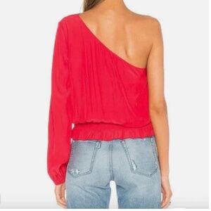 RAMY BROOK EUC One Shoulder Sleeve Shirred Detail Top in Black Size S