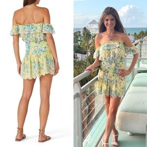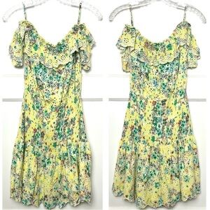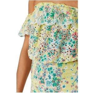 RAMY BROOK Floral Print Eyelet Ruffled Off Shoulder Smocked Waist Mini Dress XL