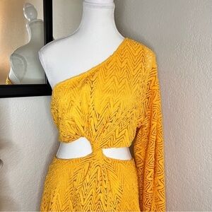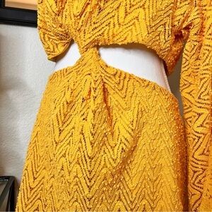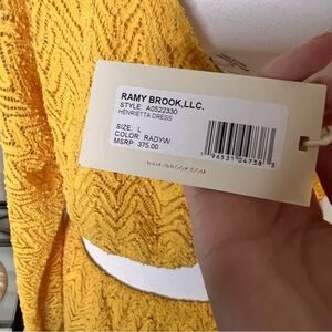 RAMY BROOK Henrietta Dress Yellow Textured Size Large NWT Cutout Flare Sleeve