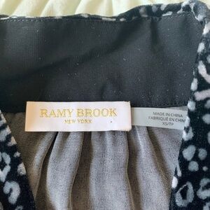 RAMY BROOK Jordyn Velvet Top w/smocked waist luxurious Black/Grey Leopard Print