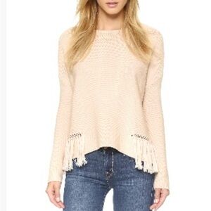 RAMY BROOK Kelly Sweater Blush Pink Pullover Fringe 100% Merino Wool