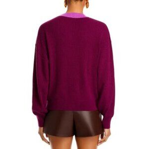RAMY BROOK Nina Contrast Rib cashmere blend Cardigan In Cabernet size XS