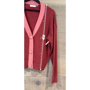 Nina Contrast Rib Cardigan In Cabernet Size XS