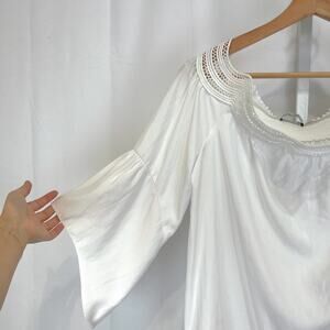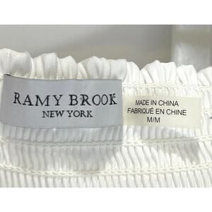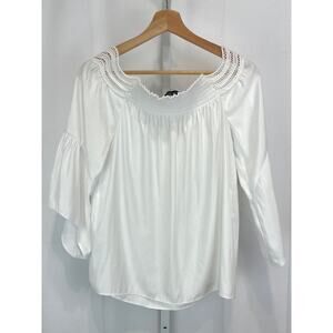 RAMY BROOK Off Shoulder Blouse Lace Trim Smocked 3/4 Flutter Sleeve White Size M