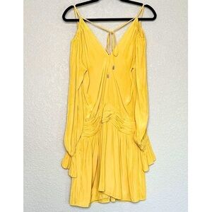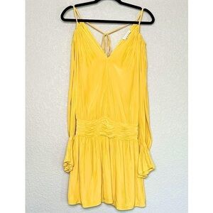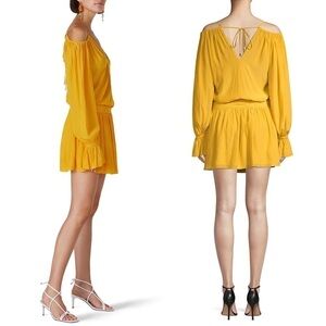RAMY BROOK Off Shoulder Long Puff Sleeves V-Neck Smocked Waist Mini Dress 0