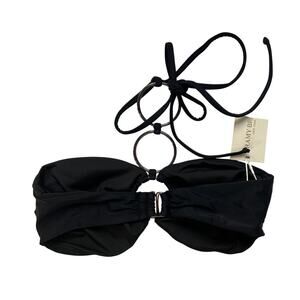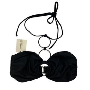 RAMY BROOK SIZE SMALL PEARL DARK TONE O-RING HALTER BIKINI SWIM TOP BLACK NEW