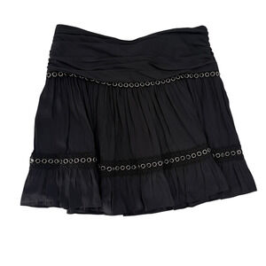 RAMY BROOK Skirt NEW Size 4 Esmeralda Black Silver Mini Stretch Smocked Eyelet Lace