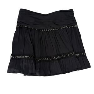 RAMY BROOK Skirt NEW Size 6 Esmeralda Black Silver Mini Stretch Smocked Eyelet Lace