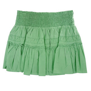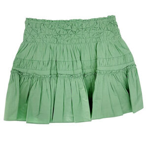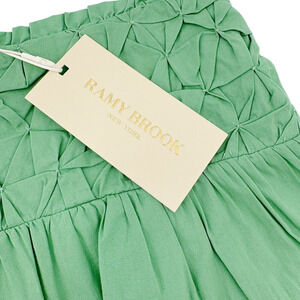 RAMY BROOK Skirt NEW Size L Jordan Smocked Green Tiered Cotton Miniskirt $295