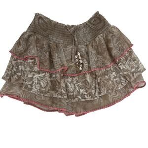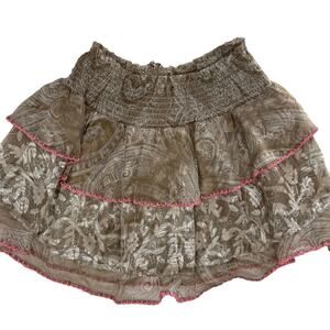 RAMY BROOK Skirt NEW Size S Asha Mini Tiered Skirt Brown Print Pink Accent $245