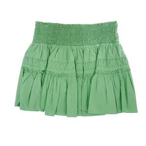 RAMY BROOK Skirt NEW Size S Jordan Smocked Green Tiered Cotton Miniskirt $295