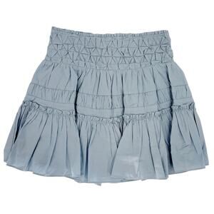 RAMY BROOK Skirt NEW Size XS Jordan Smocked Light Blue Tiered Cotton Miniskirt $295