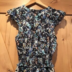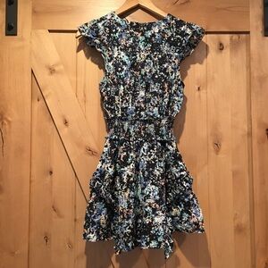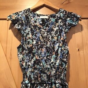RAMY BROOK smocked waist v-neck blue ruffle mini dress. Size XS. Fluttery cap sleeves bring delicate detail to this smocked mini dress. Pit to pit measurement is approximately 15 inches. Length is approximately 30 inches.