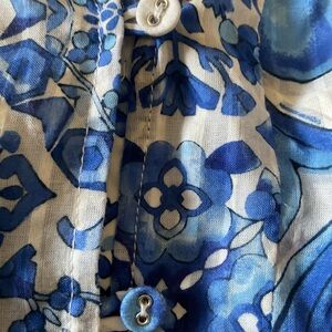 Ramy Brook Blouse Size XL. PP-23 inches, button front, half sleeves, elastic neckline, I removed fabric tag, is 100% cotton. Excellent condition, worn maybe 4 times, no stains, rips, holes. Pet friendly smoke free home.