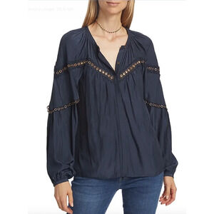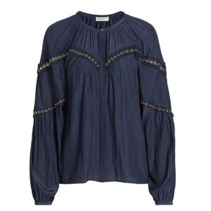 RAMY BROOK Top NEW Size M Navy Blue Blouse Grommets $365 Long Sleeve