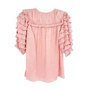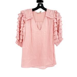 RAMY BROOK Top NEW Size XXS Waverly Ruffle Short Sleeve Light Pink Blush $345