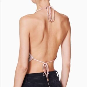 Super Sexy Fun Metallic Halter Top Designer Festival Event Date Night Party Cocktails Club High Quality Shimmering Chainmail Rose Gold Drapes in front, ties in back. Size 0 XXS MSRP $345 NEW With TAGS Offers Welcome! PS5816