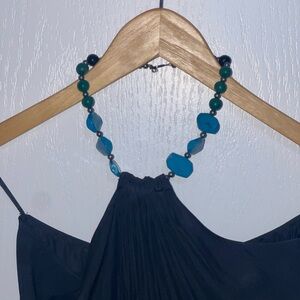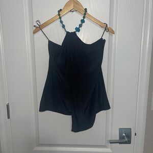 RAMY BROOKE Elegant Halter Tank Blue Green Black Beaded Hook Polyester XXS