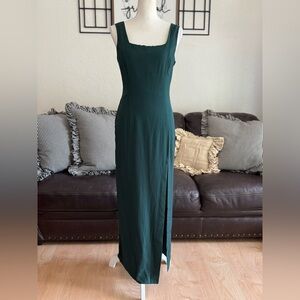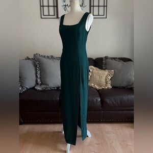 RANDM NIGHTS Vintage Elegant Dark Green Caged Ladder Back Maxi Dress Size 9 Rare