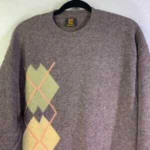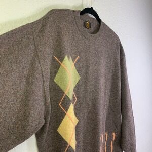 RANGIN Crew Neck Argyle Marled Faux Elbow Patches Graphic 80's Style Sweater