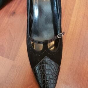 RANGONI BLACK SUEDE AND SNAKESKIN LOOK PUMP