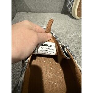 Step into comfort and style with RANK 45's size 12D slip-on shoes, featuring a unique blue Aztec print that makes a bold statement with any casual outfit. The herringbone pattern adds a classic touch to these contemporary shoes, crafted from premium leather uppers for durability and a sophisticated look. Designed with the modern man in mind, these shoes boast a moc toe feature for added appeal and an effortless fit. Whether you're heading to a casual work environment or enjoying a day out, these RANK 45 shoes are the perfect blend of comfort and style for all your footwear needs.