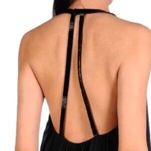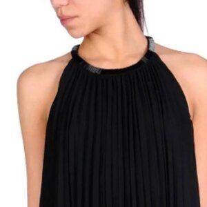 RAOUL Black Pleaded Open Back Sequins Straps Midi Dress | Size 6